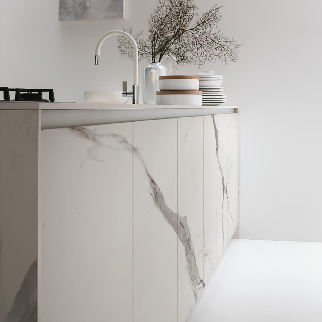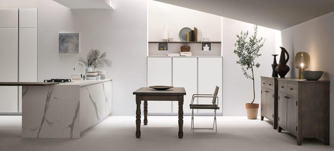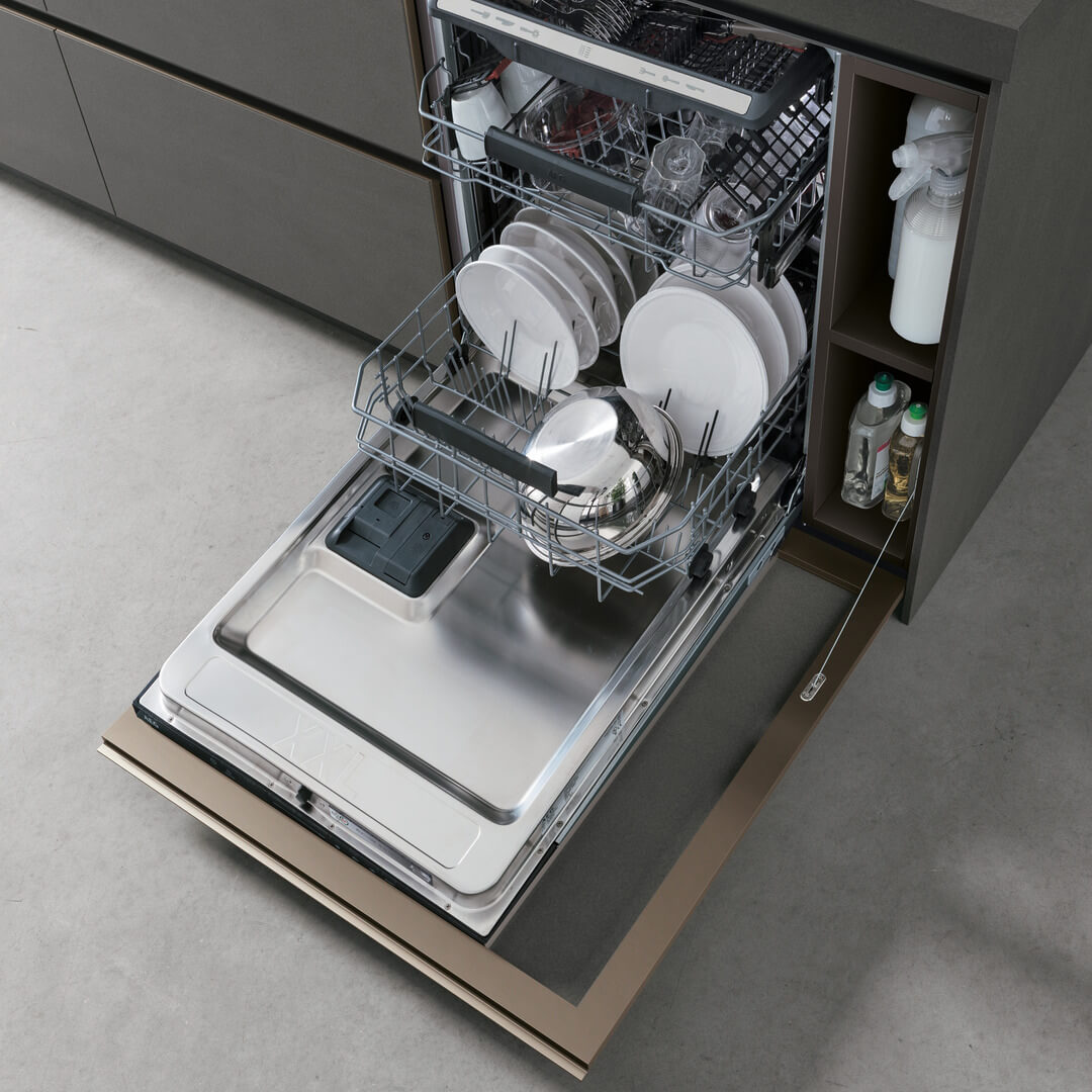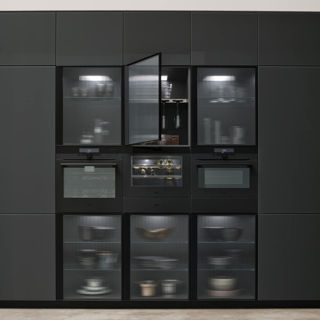 Aliant interpreta uno dei materiali più puri: il vetro. Una cucina che può essere integrata con ante e elementi eclettici per soluzioni inedite, un armonioso gioco di riflessi che esprime leggerezza visiva, dove il vetro rimane l’elemento protagonista. Può essere dotata di una vasta gamma di accessori che la rendono adatta per tutte le esigenze: come Tavinea Grass, un nuovo sistema organizzativo-innovativo all’interno di cassetti e cestoni per gli utensili della cucina. Cassetti con portaposate dalla moderne linee oblique, utilissimi e dal design raffinato. Una grande ricerca formale anche all’interno dei cestoni con eleganza e ordine, un mix di materiali durevoli come metallo e legno. Dettagli preziosi come Detroit, la barra luminosa a LED con sensore elettronico che permette l’accensione e lo spegnimento automatico della lampada alla chiusura del cassetto.