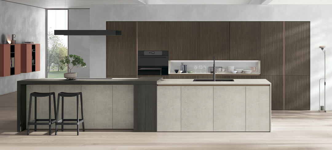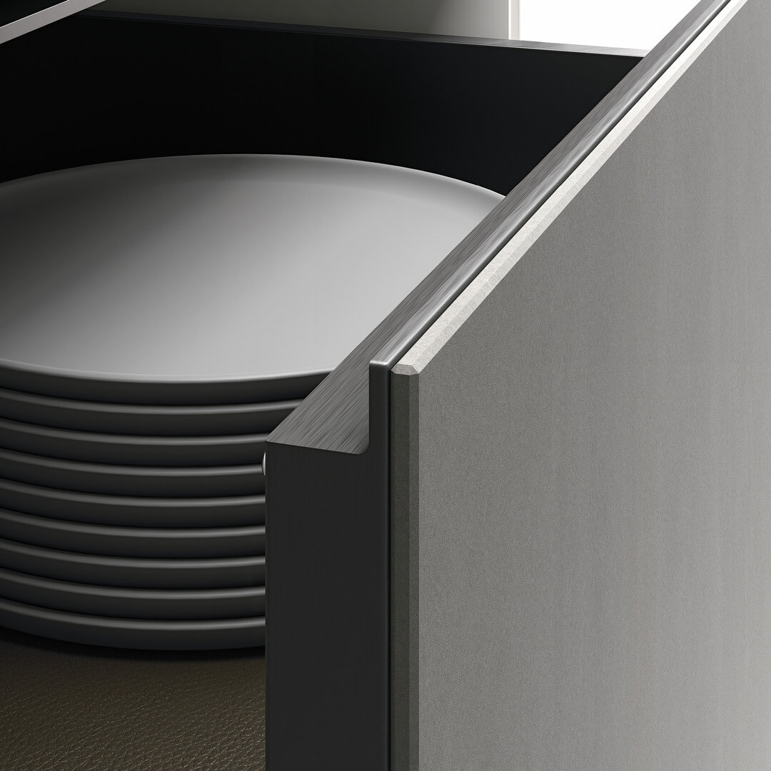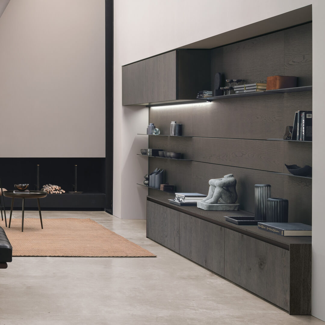 Gli interni di basi e colonne si possono personalizzare con il faretto a LED Emotion, dotato di telecomando che permette di cambiare il colore della luce passando da un’effetto caldo a freddo. Anche i ripiani si possono personalizzare inserendo Strike, ripiano in vetro con telaio in alluminio. Il dettaglio – interno ed esterno – nella cucina diventa una nota distintiva sinonimo di qualità.