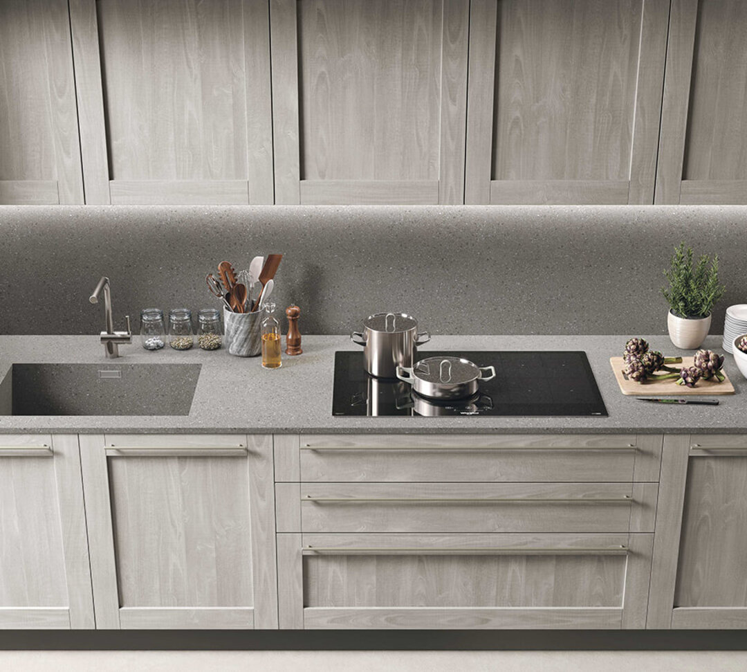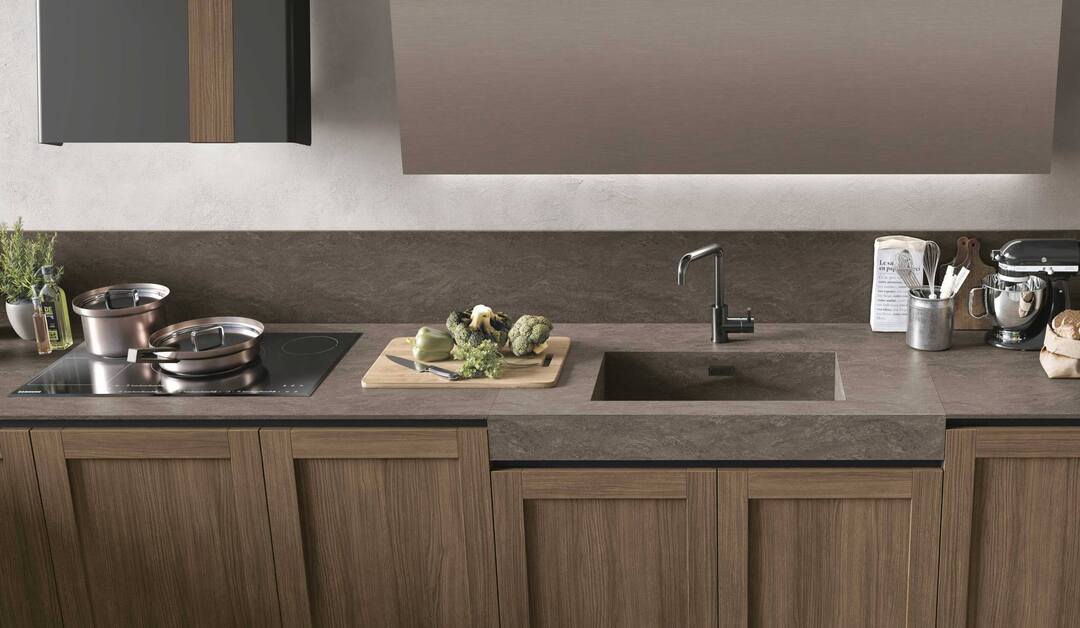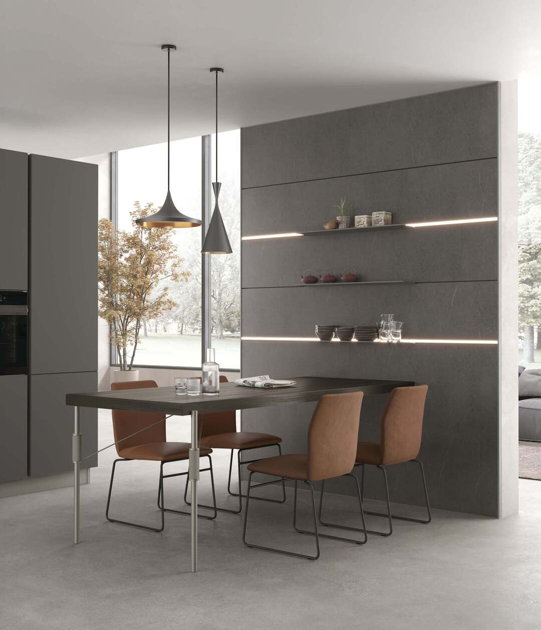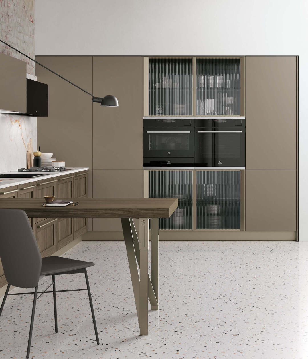 Un progetto di cucine in continuo aggiornamento, che declina materiali di tradizione in veste contemporanea. La cappa “Ipe” in lamiera, finitura Peltro, porta un tocco deciso di forte carattere. Lo scaffale/dispensa “Amico” in metallo rivisita gli anni ‘50 in chiave moderna per un “sapore vissuto”. Soluzioni flessibili come il tavolo “Amico” estraibile girevole che compare, riappare e ruota a seconda delle esigenze. Inoltre, tra le novità dell’ultimo Restyle di Stosa City è possibile trovare anche le esclusive ante in finitura PET. C’è più di un ingrediente segreto in City: la ricerca dei materiali e la creatività del design.