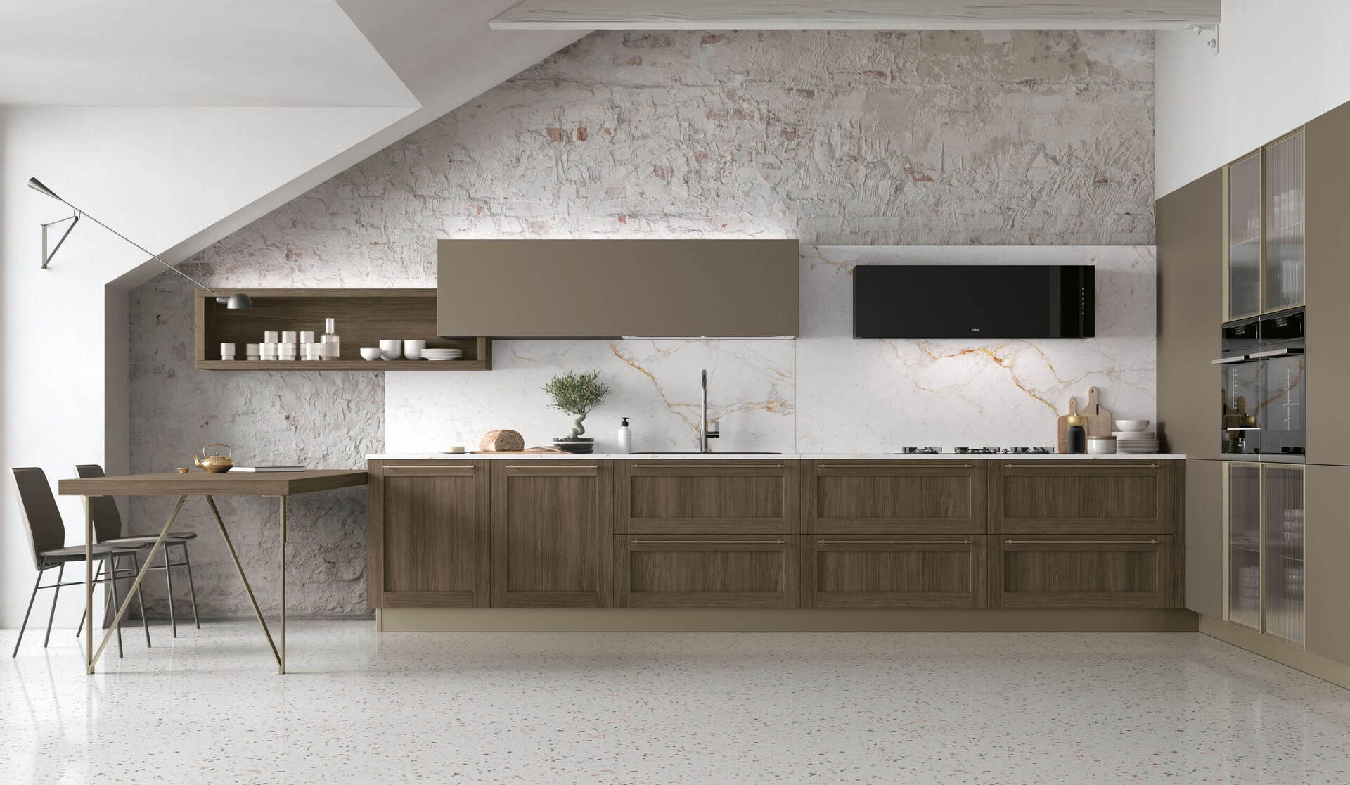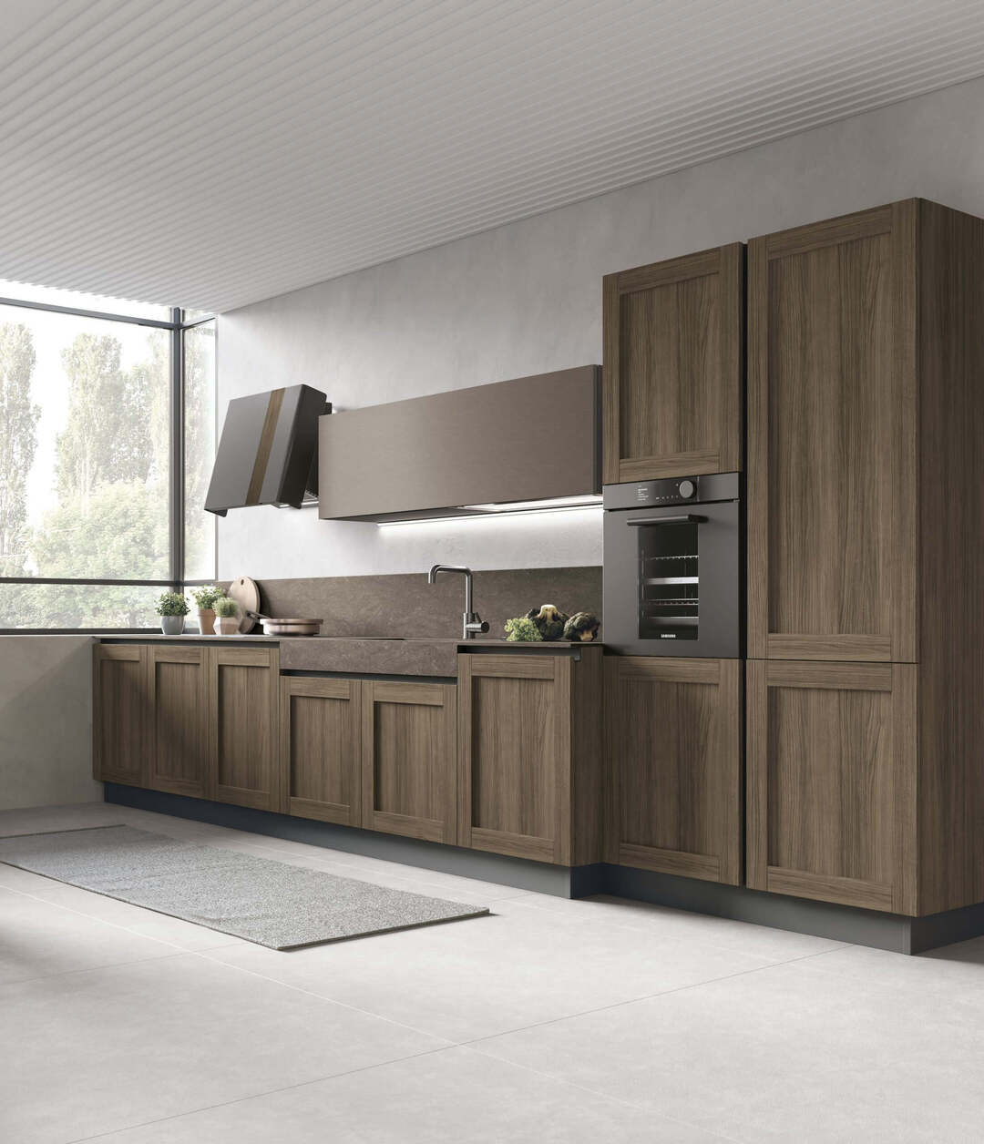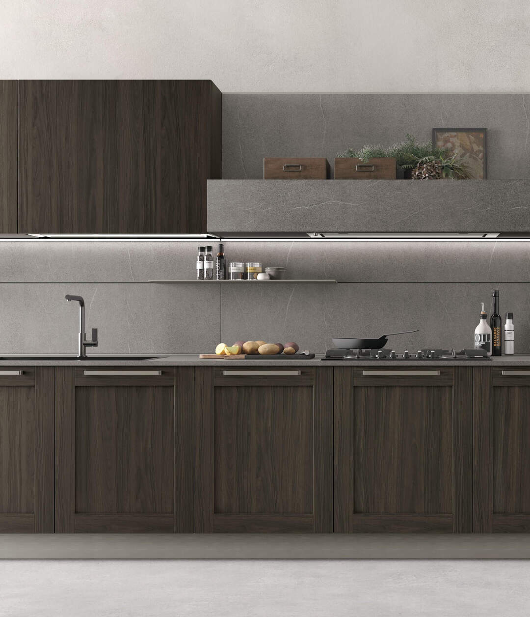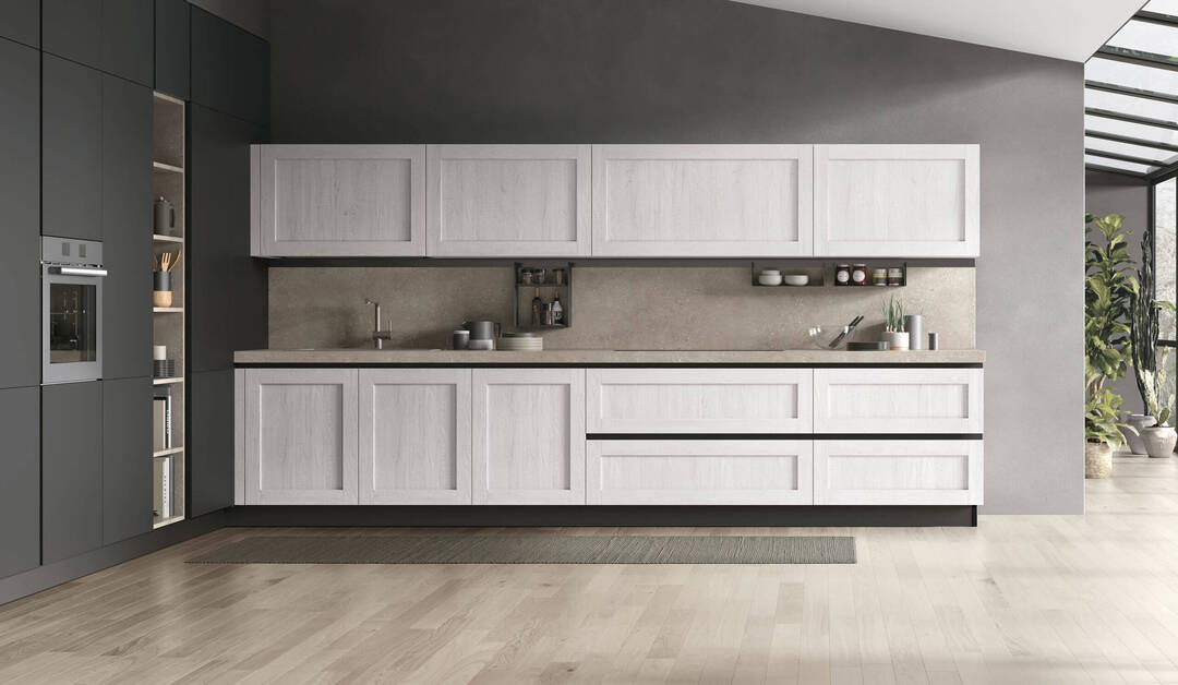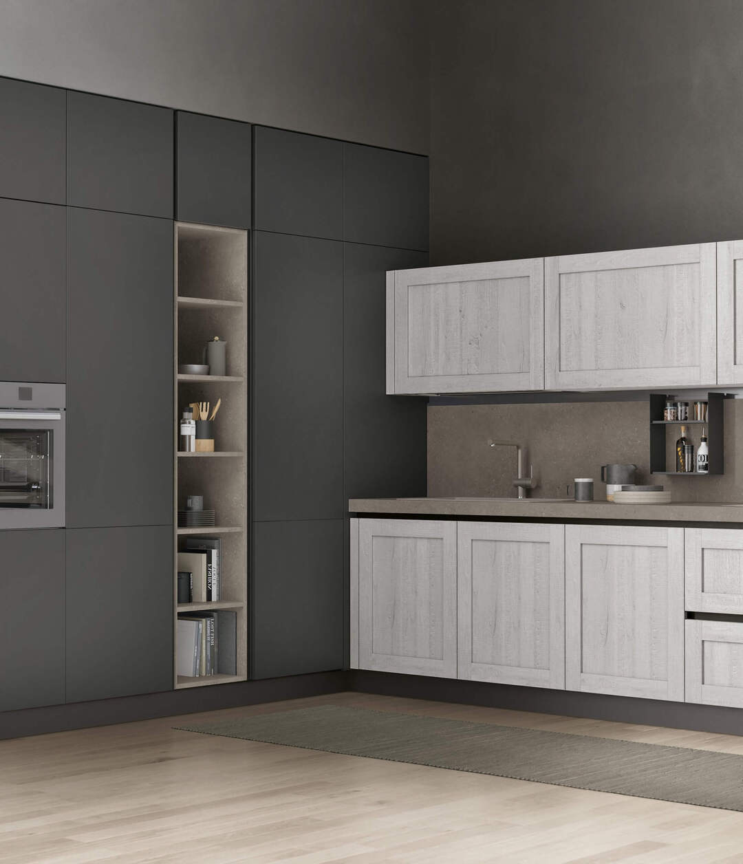 Benvenuti nella nuova cucina City, un mix di ispirazioni vintage: il design del passato interpretato in chiave contemporanea, per uno stile non convenzionale e creativo. Un’estetica solida e decisa, una cucina capace di offrire interessanti sensazioni tattili e visive. Superfici irregolari in rovere jeans, rovere brizzo, rovere bianco o sabbia abbinate ad arredi in metallo e lamiera, finiture inedite come cemento lavagna che evocano atmosfere industrial style.