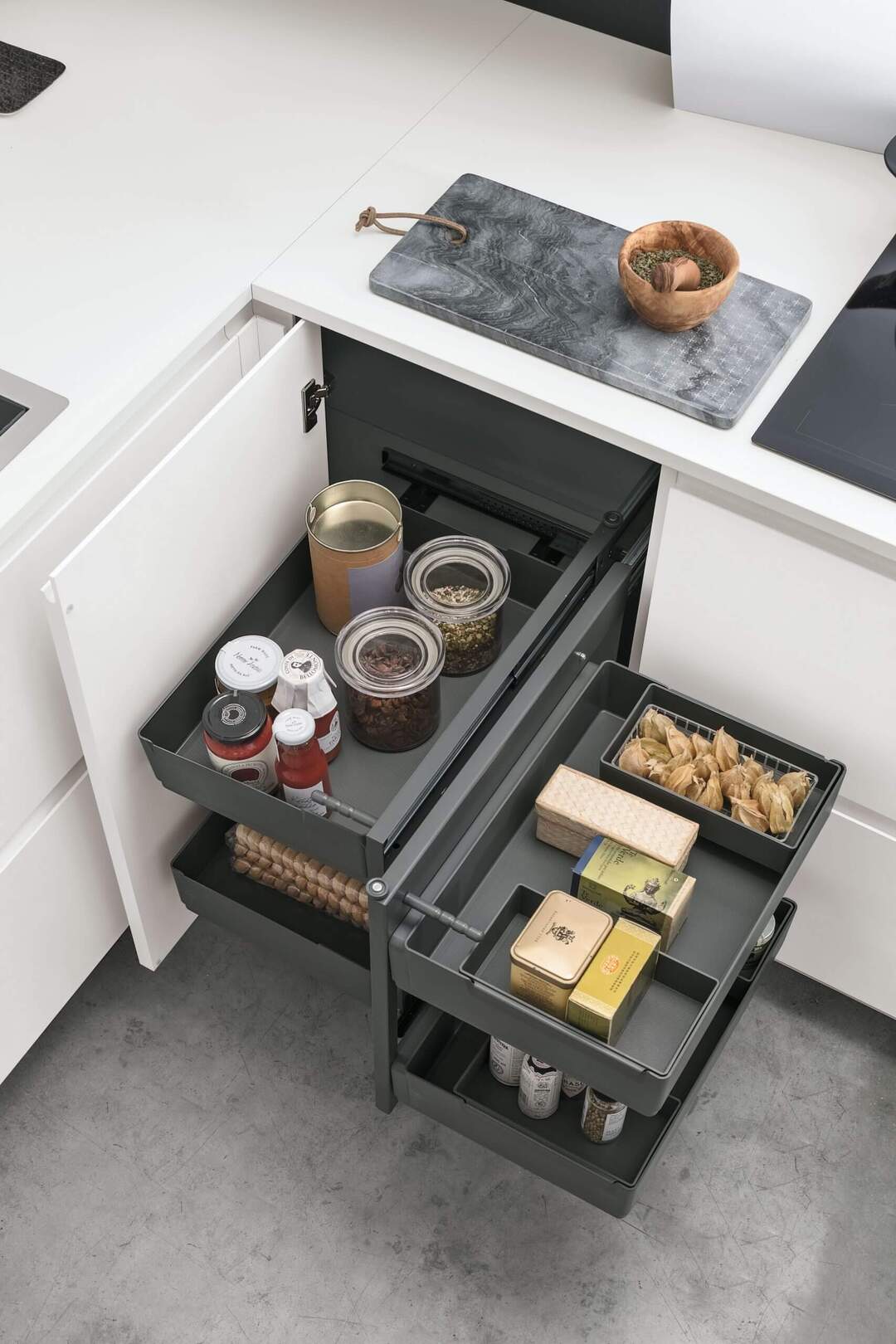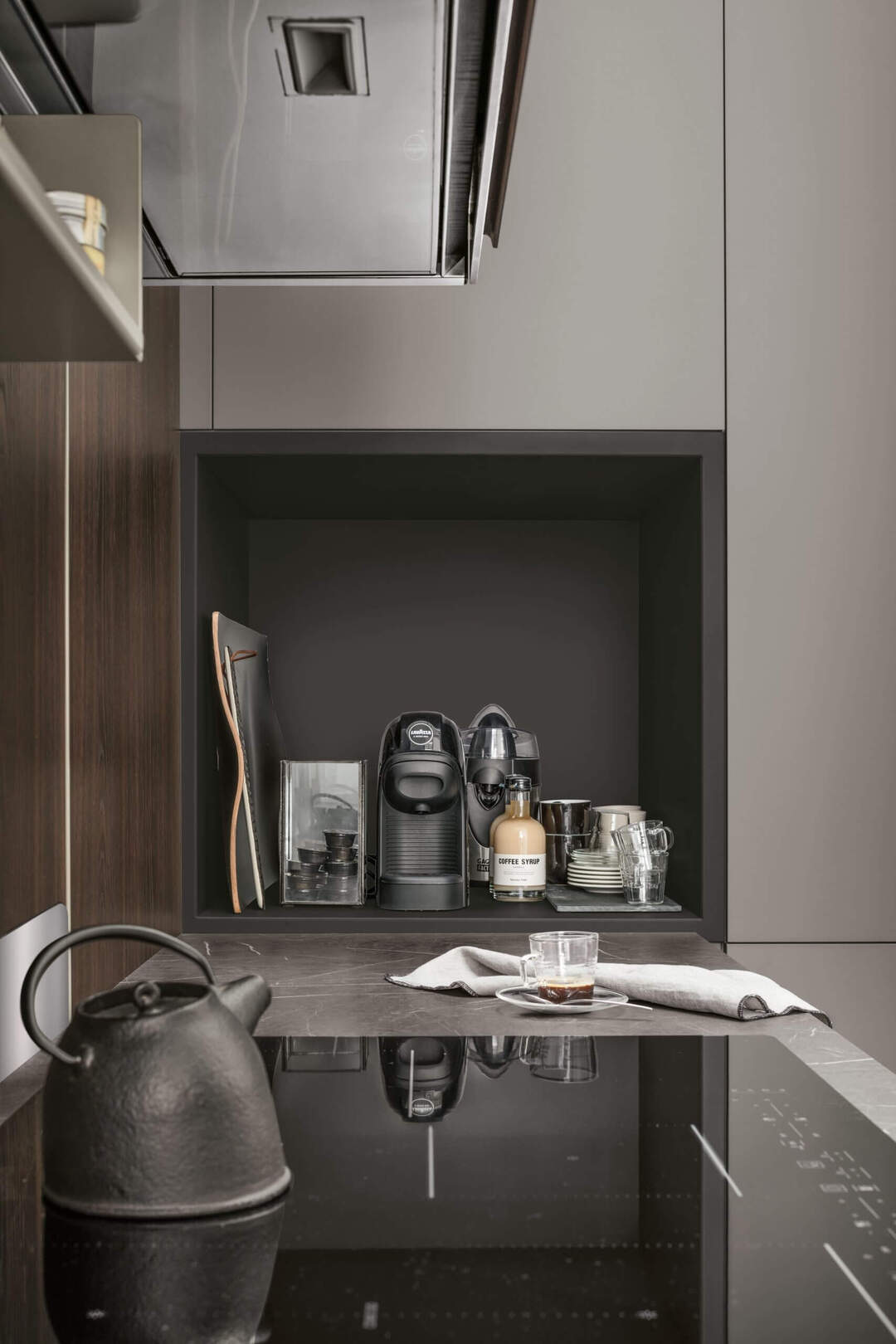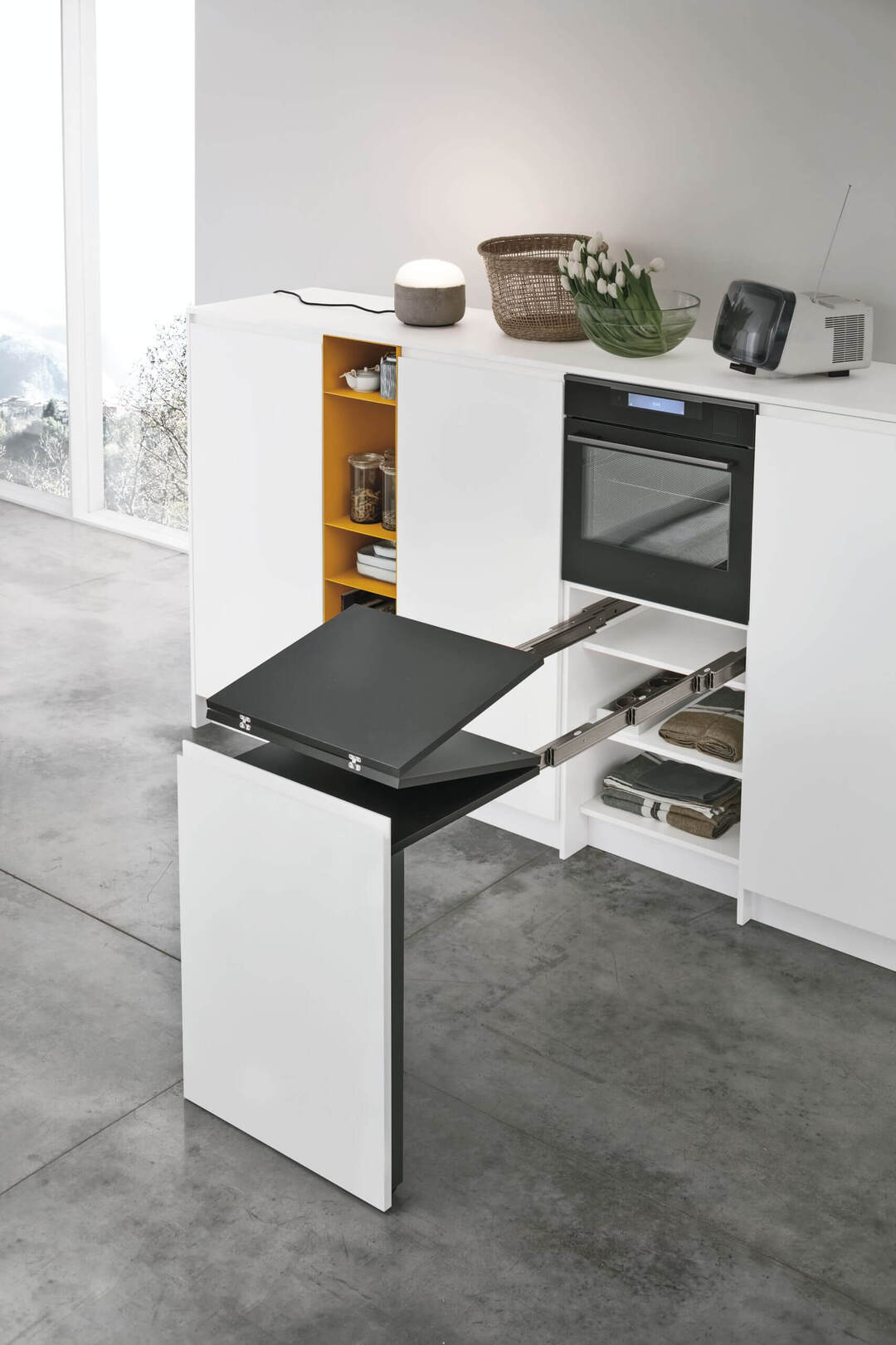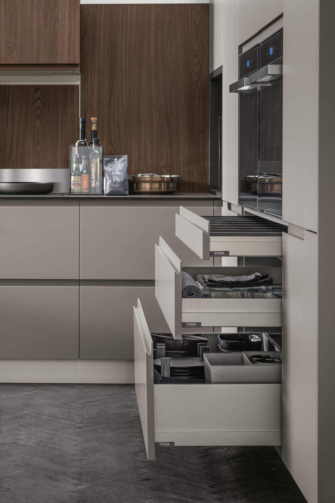 Pensata per un pubblico amante dello stile pulito e in grado di dare massimo risalto ai contrasti materici e cromatici delle finiture, Karma si distingue per l’anta con presa maniglia integrata che definisce e decora la cucina con tre tipologie di apertura: maniglia totale, maniglia parziale, contropresa maniglia, dettagli che contribuiscono a un look originale che al contempo garantisce massima funzionalità.