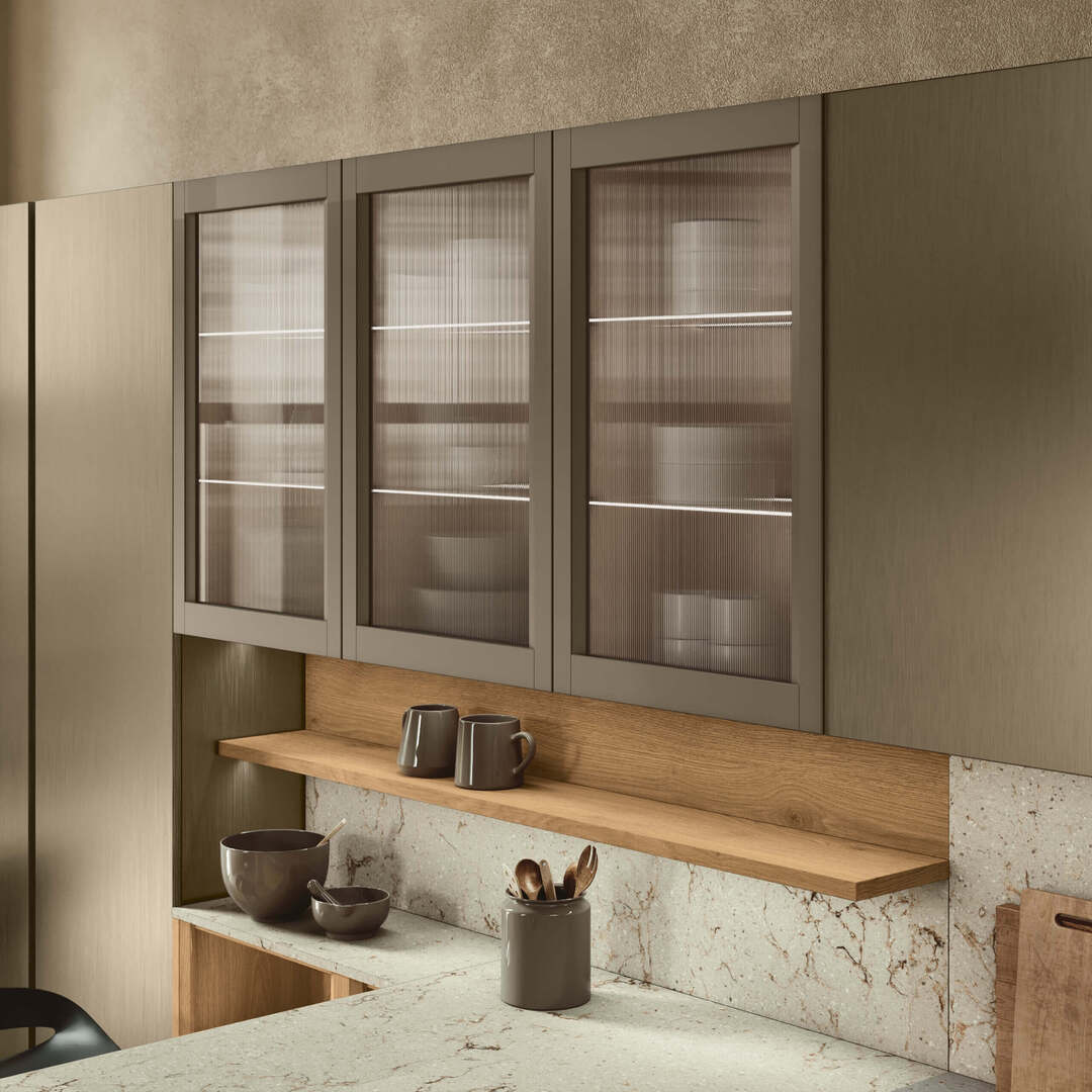 Con Palio è possibile miscelare ante lisce o termo strutturate alle ante telaio.