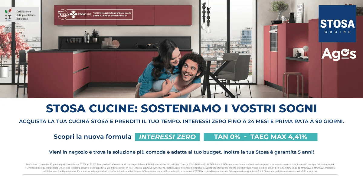 N.B. Ove non specificato le promozioni elencate non sono cumulabili fra loro e sono da intendersi salvo errori e/o omissioni. Chiedi al tuo arredatore per i dettagli.